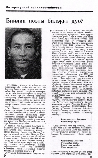 Егоров Гавриил Иванович-Биилин туһунан ыстатыйалар