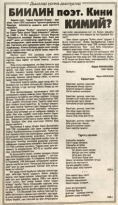 нүөмэригэр поэт Биилин бэчээттэппит «Саҥа планета», «Аммаҕа» диэн